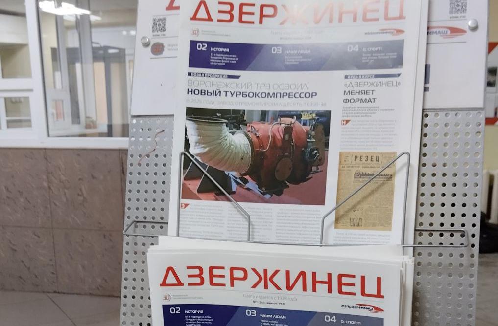 Вышел первый в 2026 году номер заводской газеты «Дзержинец» Воронежского тепловозоремонтного завода (ВТРЗ). Издание предстало перед читателями в увеличенном формате А3 и с полностью обновленным дизайном.