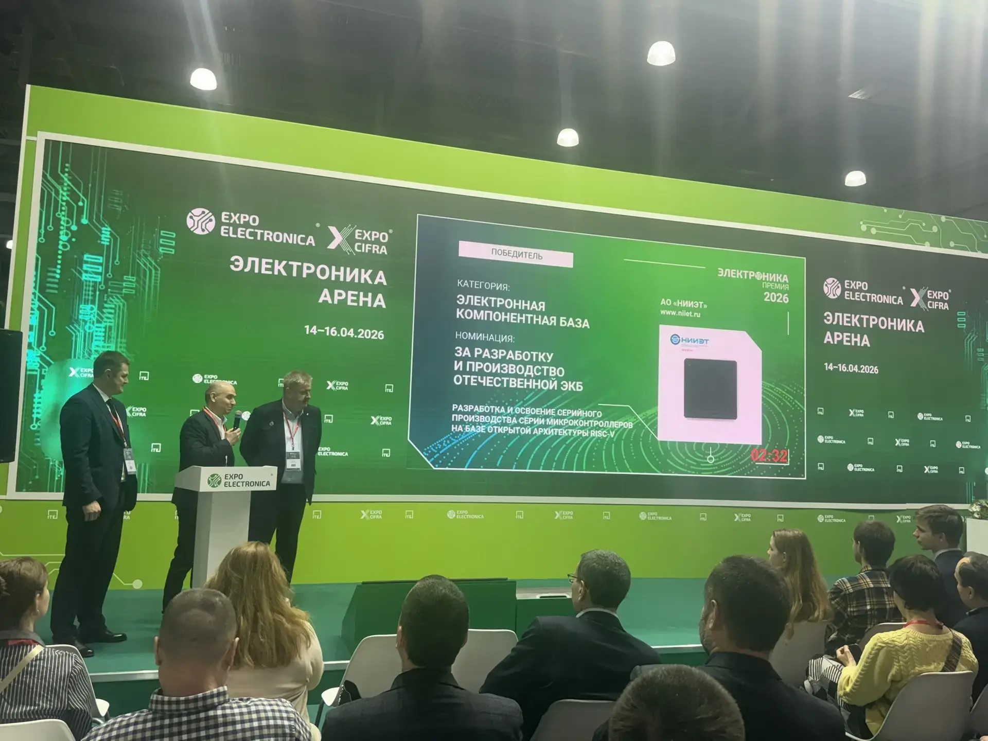 В Москве подвели итоги ежегодной независимой бизнес-премии «ЭЛЕКТРОНИКА». В ключевой номинации «Электронная компонентная база» победу одержал воронежский НИИ электронной техники. Награда присуждена за стратегический проект по разработке и запуску в серийное производство линейки из четырех 32-разрядных микроконтроллеров на открытой архитектуре RISC-V.