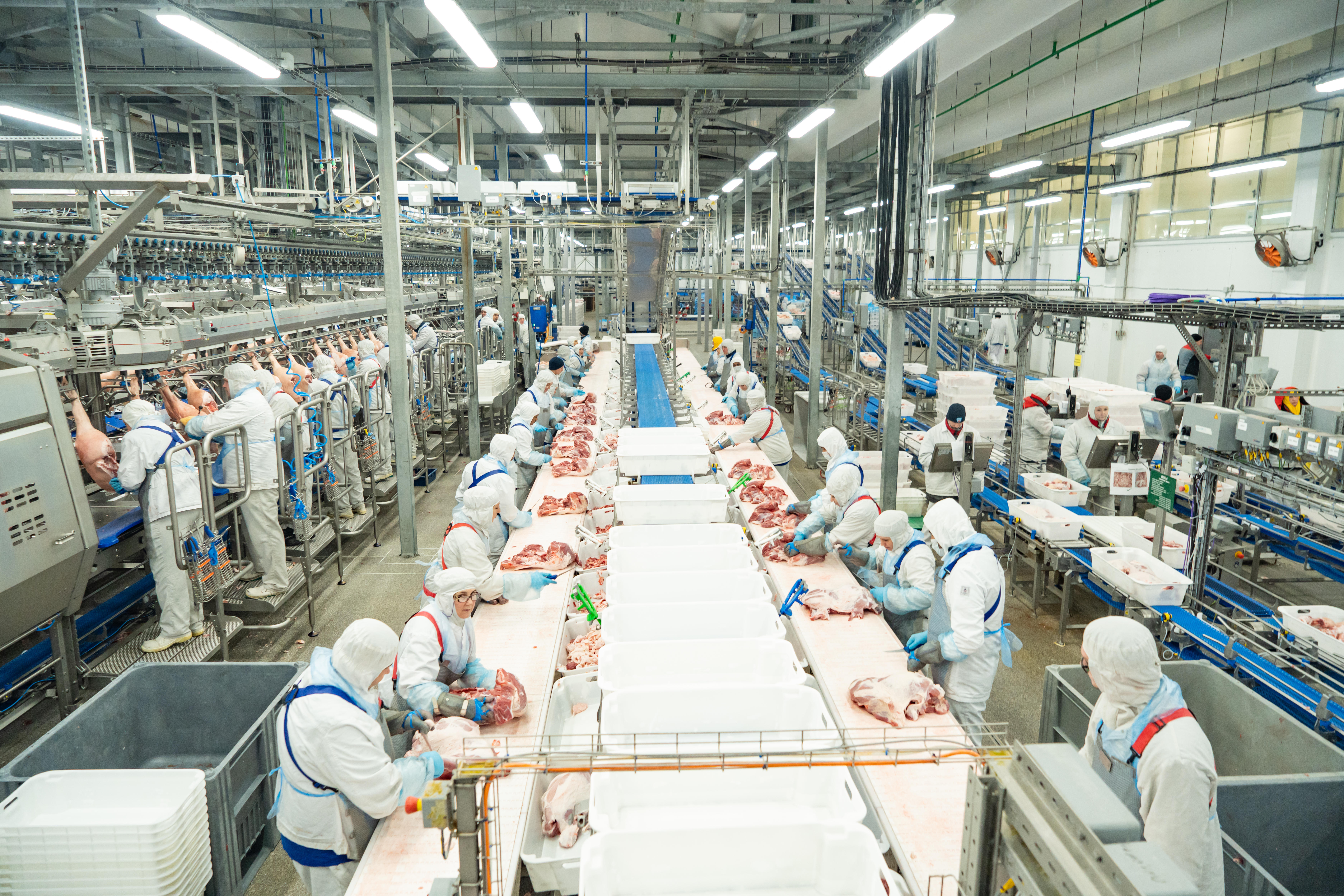 Сегодня на автоматизированных линиях конвейера установлено современное роботизированное оборудование. Благодаря ему и линиям вертикальной обвалки происходит минимальное воздействие на мясо, что сохраняет его качественные характеристики. Например, категория полутуш определяется автоматически с помощью специализированной системы на основе около 200 параметров. Роботы берут на себя сложные этапы работы, что облегчает человеческий труд на предприятии.