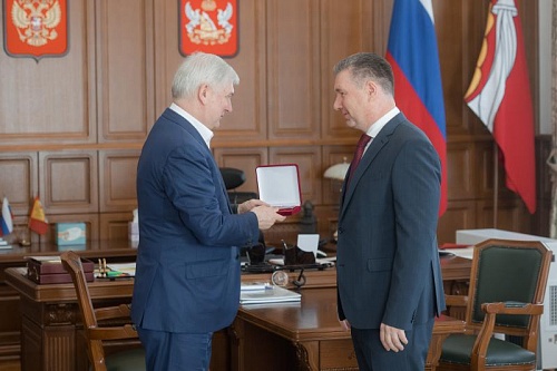 Губернатор Александр Гусев провел встречу с ректором ФГБОУ ВО «Воронежский государственный лесотехнический университет имени Г.Ф. Морозова» Михаилом Драпалюком, на которой поздравил его с 50-летним юбилеем и вручил почетный знак «За добросовестный труд и профессионализм».