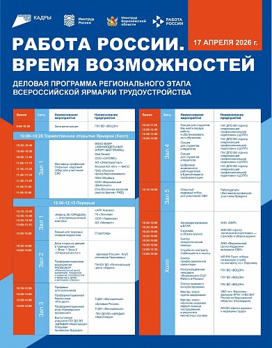 Мероприятие пройдет при поддержке Министерства труда и занятости населения Воронежской области и объединит на своей территории пять тематических залов, холл с интерактивными стендами и деловые зоны для прямого диалога соискателей с представителями крупнейших промышленных и инфраструктурных компаний региона.