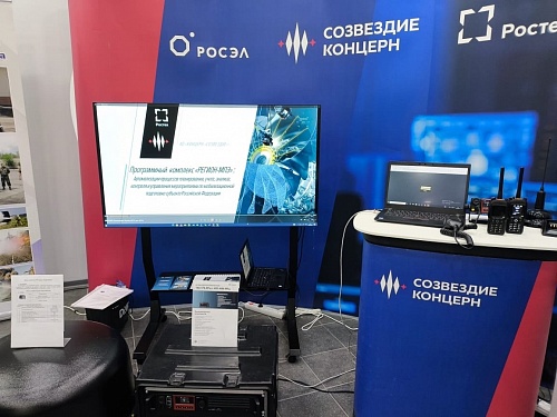 Концерн «Созвездие» представил на мероприятии инфраструктурное оборудование, ретранслятор и портативные транспортные радиостанции стандарта DMR, программный комплекс «Регион – МПЭ», а также комплекс противодействия бесплотным летательным аппаратам «Леший», разработанный заводом «Полюс», входящим в состав Концерна.