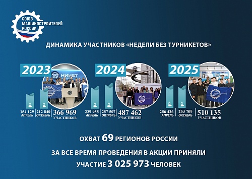 В 2025 году Всероссийская акция «Неделя без турникетов», реализуемая Союзом машиностроителей России при поддержке предприятий и образовательных организаций, отметила свое десятилетие. За это время проект стал одним из главных профориентационных инструментов страны, знакомящим школьников и студентов с современным производством и инженерными профессиями. Акция проводится дважды в год - в апреле и октябре, ее формат позволяет будущим инженерам увидеть реальные производственные процессы, познакомиться с технологиями и попробовать себя в роли специалистов разных направлений.