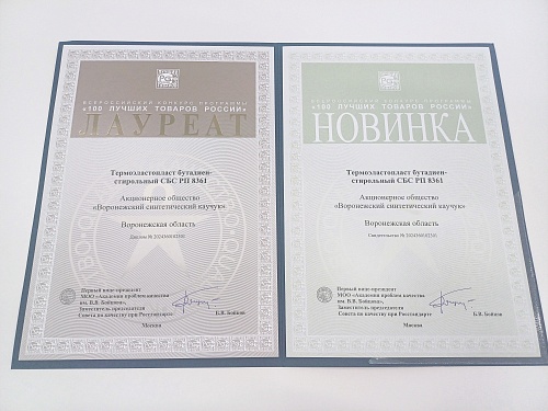 Воронежское предприятие СИБУРа – победитель Всероссийского конкурса «100 лучших товаров России». Знак отличия, декларацию качества и дипломы вручили руководству «Воронежсинтезкаучука» в Правительстве Воронежской области. Наградой отмечена марка СБС-полимера РП 8361, которая благодаря своим качествам используется в производстве обуви, детских игрушек и других потребительских товаров. Данная марка на конкурсе получила и второй диплом «Новинка – 2024» как новый вид продукции.