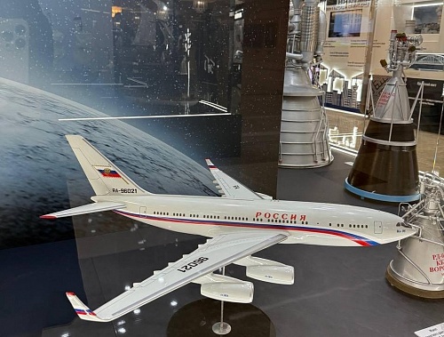 На стенде филиала ПАО «Ил» - ВАСО продемонстрирован макет флагмана - дальнемагистрального широкофюзеляжного самолета Ил-96-300.