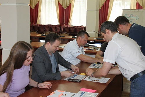 В ходе тренинга руководители проводили производственный анализ и искали потери, оценивали влияние производительности труда на рост экономических результатов предприятия. Во время деловой игры участники выстраивали полный производственный процесс на условном заводе, с каждым шагом сокращая потери в процессах и в итоге смогли сформировать идеальную модель работы производства. Справиться с поставленными задачами помогли навыки картирования и балансировки процессов с учетом времени такта, сокращения потерь.